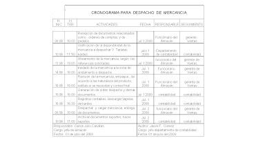 CRONOGRAMA PARA DESPACHO DE MERCANCIA